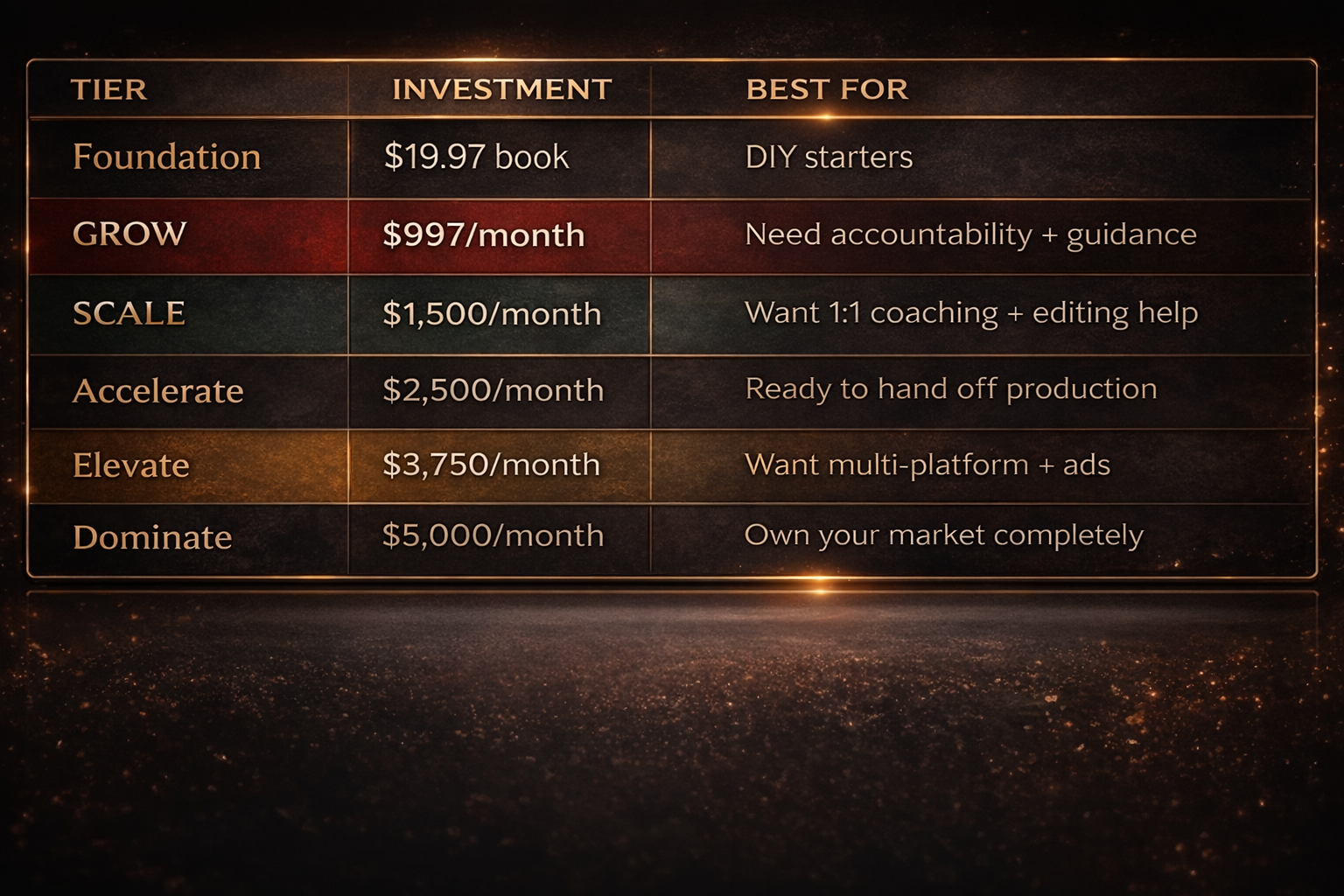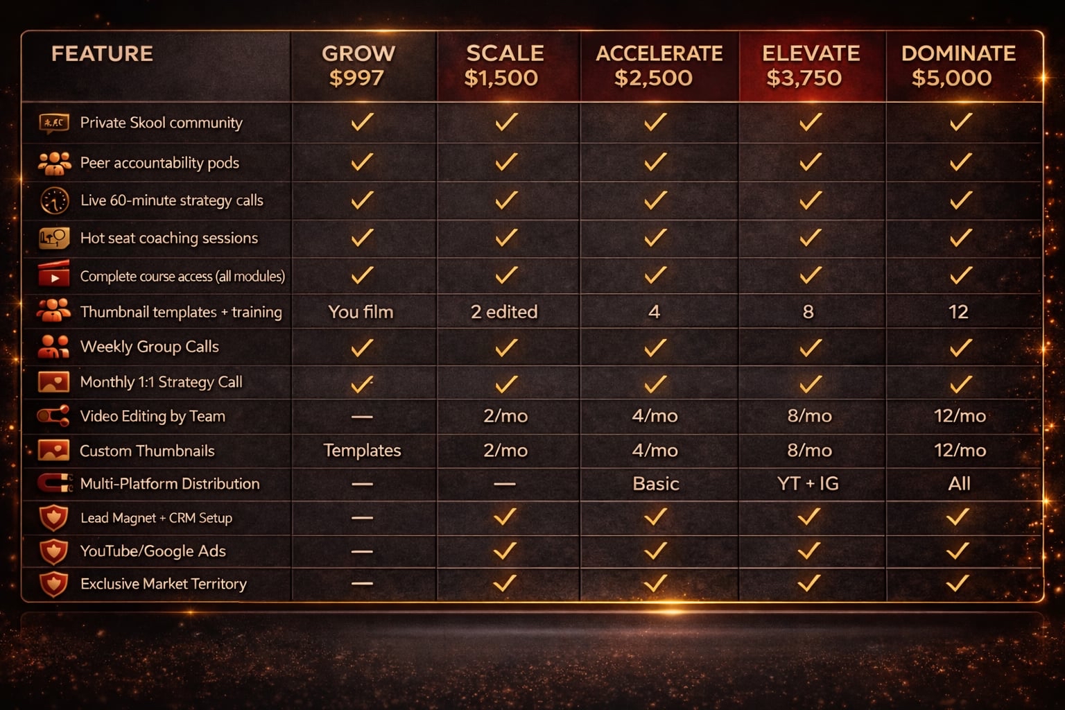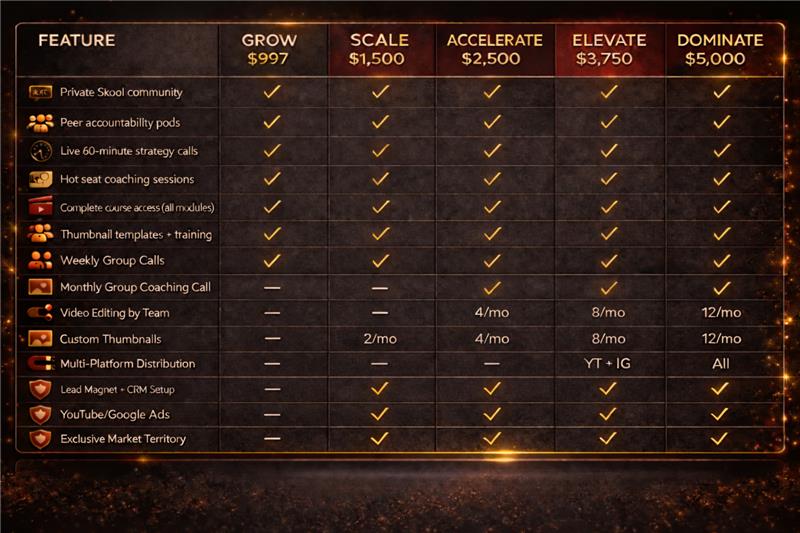 Every tier includes access to our private community, proven frameworks, and the accountability you need to actually execute.